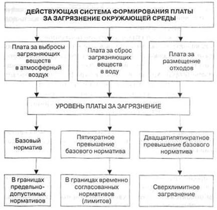 ФЗ «Об охране окружающей природной среды» предусматривается следующие виды платы за загрязнение: