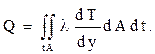 где dQ - количество теплоты, проходящее через элемент поверхеости dA за время dt, (dT/dy) - градиент температуры, - теплопроводность, физический параметр вещества. Все количество теплоты, прошедшее через поверхность за время t будет определяться интегралом