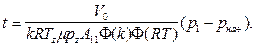 Пределы интегрирования данного уравнения определяются из следующего соображения: при t = 0, p 1= 0, при t = t, p 1= p 1. После интегрирования получим