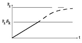 На рисунке ниже приведен график наполнения полости и указана область использования полученного уравнения (до давления в полости p = p zbk). Дальнейшее наполнение полости до давления в магистрали происходит при докрритическом течении через дроссель втекания.