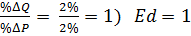 2)единичная эластичность спроса, когда изменение цены, выраженное в процентах, равно проценту изменения объема продаж (Ed=