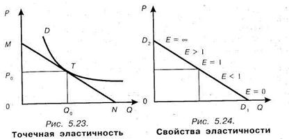 Эластичность линейной функции спроса изменяется от 0 (в точке D1) до ∞ (в точке D2) (рис. 5.24).