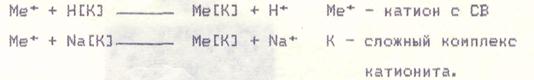 Если катиониты находятся в Н или Na—Форме, обмен катионитов проходит по реакциям: