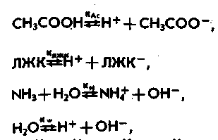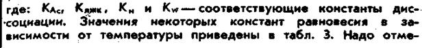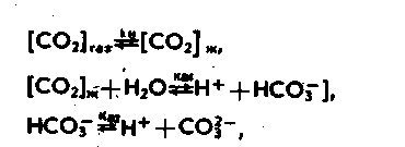 где Ка1 и Ка2 — константы диссоциации, kH — константа Генри. Немаловажную роль играют также диссоциативные равновесные процессы для уксусной кислоты и других ЛЖК, аммиака и воды: