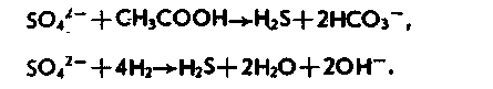 Проблемы возникают при присутствии в сбраживаемых сточных водах сульфат-ионов, которые сами по себе обладаюt весьма умеренной токсичностью. Но всегда присутствующие в микрофлоре анаэробных реакторов сульфатвосстанавливающие бактерии (СВБ) являются очень мощными конкурентами метаногенов, так как процесс сульфатредукции является значительно более энергетически выгодным, рем реакции метанобразования. Кроме того, продуктом жизнедеятельности СВБ является сильный ингибитор метанового брожения сероводород: