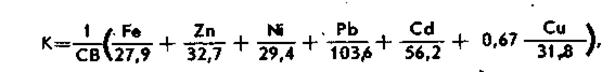 где К — суммарная нагрузка по ионам тяжелых металлов, концентрации которых выражены в мг/л, а СВ— концентрация сухих веществ в реакторе (для стоков без взвешенных частиц она почти равна концентрации биомассы), г/л. Коэффициент 0.67 учитывает частичное восстановление Сu2+ в Сu+. Значения К до 0.4 мг-экв/г являются безоопасными; 0.4—0.8 мг-экв/г — переходная зона, где эффекты ингибирования могут проявляться, а могут и не проявляться; свыше 0.8 мг-экв/г — эффекты ингибирования значительны.