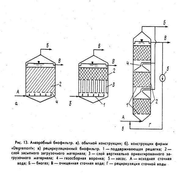 Анаэробный биофильтр – первый анаэробный фильтр с восходящем потоком прикрепленной биомассой был предложен Янгом Маккарти в 1967 г. В этом сооружении сточная вода подается через данную распределительную систему, проходит через слой загрузочного материала и отводиться из верхней части реактора.