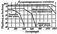 Рис. 20. Зависимость твердости инструментальных материалов от температуры