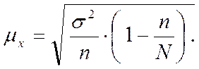 Поскольку при бесповторном отборе объем генеральной совокупности (N) в ходе выборки сокращается, то в формулу расчета средней ошибки выборки включается дополнительный множитель