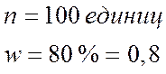n = 100 единиц; доля стандартной продукции составила w - 80%.