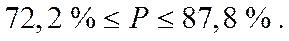 Это означает, что с вероятностью 0,954 можно утверждать, что удельный вес стандартных изделий во всей партии находится в пределах от 72,2% до 87,8 %.