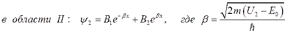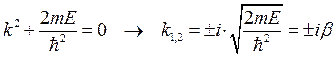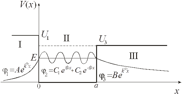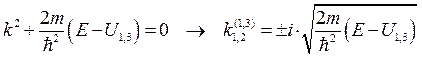 Из последнего выражения видно, что для энергии частицы Е < U 1,3 волновые числа действительны и решения при удалении от потенциальной ямы имеют экспоненциально нарастающий или экспоненциально убывающий вид. Физический смысл имеют только экспоненциально убывающие решения, поэтому для х <0 (область I)