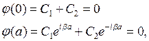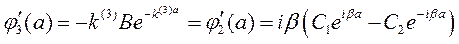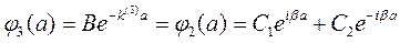 В точках х =0 и х=а должна выполняться непрерывность волновых функций и их производных, откуда следуют четыре неоднородных алгебраических уравнения для четырех отношений амплитуд А2 /А1, В1 /А1 , В2 /А1 , F/А1 . Решая эту систему, получим аналитические выражения для искомых величин, которые, однако, из-за их громоздкости не приводятся.