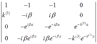 Соотношения (8.12) образуют систему 4 однородных алгебраических уравнений относительно 4 неизвестных амплитуд А, В, С 1, С 2. Для нетривиального решения этой системы необходимо и достаточно, чтобы ее определитель был равен нулю: