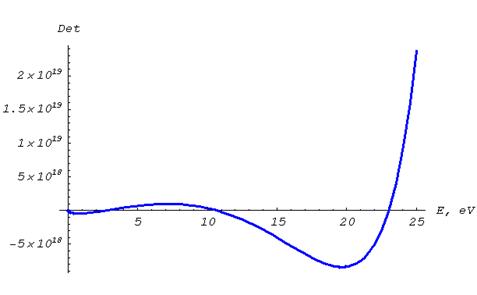 Рис. 5.2. Вид трансцендентной функции Re[Det(8.13)] и ее корни.