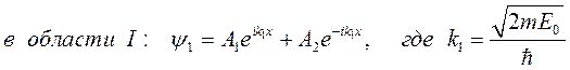 Волновую функцию электрона в областях I, II и III определим из уравнения Шредингера