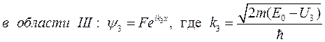 где потенциальная энергия U в областях I, II и III принимает соответственно значения 0, U2 и U3. Общие решения для этих областей (по аналогии с предыдущим примером) будут иметь вид