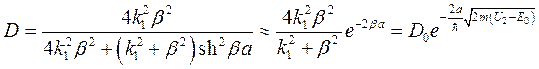 Ввиду важности коэффициента прозрачности приведем его выражение для частного случая U 3=0 (при этом и k 3 = k 1)
