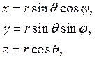 Вращательное движение удобнее описывать в сферической системе координат. Переход из декартовой системы в сферическую дается формулами: