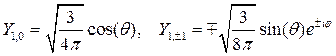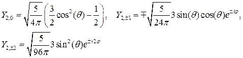 (l =0,1,2,3,…) в специальных функциях, называемых сферическими гармониками или шаровыми функциями, причем для каждого значения l имеется 2 l +1 решений: