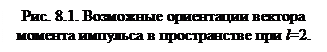 (задано l) описывают состояния с различными проекциями момента на ось z, характеризуемые числом m. Таким образом, возможные значения абсолютной величины момента импульса и возможные значения проекции момента импульса на произвольную ось z имеют квантованные значения. Никакие другие значения, кроме приведенных, не могут реализоваться в природе.