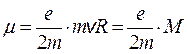 Движение заряженных частиц по замкнутым траекториям кроме механического момента М характеризуется еще и магнитным моментом m, определяемым как произведение тока на площадь орбиты. Для круговой орбиты можно записать
