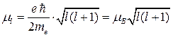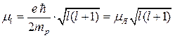 то есть магнитный момент заряженной частицы строго пропорционален ее механическому моменту М. Используя квантовомеханическое значение для орбитального механического момента (8.17), запишем магнитный момент орбитального движения для электрона: