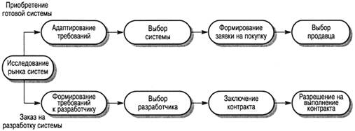 На рис. 2.7 показаны этапы процесса приобретения как готовых систем, так и разрабатываемых по заказу. Перечислим некоторые важные моменты процесса приобретения.