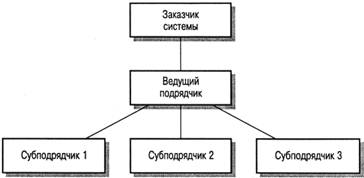 Очень немногие организации имеют возможности для проектирования, производства и тестирования всех компонентов сложных больших систем. Организация – разработчик системы, которую обычно называют ведущим или генеральным подрядчиком, может заключать контракты на разработку отдельных подсистем с другими субподрядчиками (рис. 2.8). Для создания больших систем, таких как системы управления полетами, группа организаций-разработчиков может создать консорциум для выполнения контракта. В консорциум должны входить разработчики и поставщики всех компонентов системы, например разработчики вычислительных устройств и программного обеспечения, поставщики периферийного оборудования и специального оборудования (скажем, радаров).