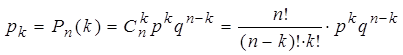того, что случайную величину Х примет значение xk находится по формуле Бернулли