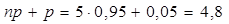 Пример 2: Применяемый метод лечения приводит к выздоровлению в 95 % случаев. Пятеро больных применяли данный метод. Найти наивероятнейшее число выздоровевших, а так же числовые характеристики случайной величины Х – число выздоровевших из 5 больных применявших данный метод.