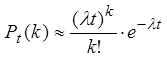 При выполнении свойств 1- 3 данный поток событий обладает свойствами распределения Пуассона и тогда вероятность того, что за промежуток времени t событие произойдет k раз, равна