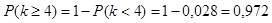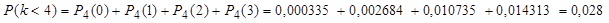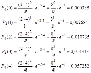 По формуле (13) найдем вероятности поступления 0, 1, 2, 3 или 4 звонка: