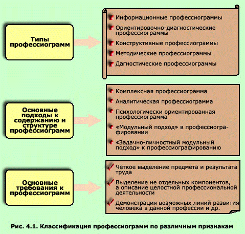 Сложившиеся приемы и принципы оформились в специальный подход — профессиографию, под которой понимают описательно-техническую и психофизиологическую характеристику различных видов профессиональной деятельности.