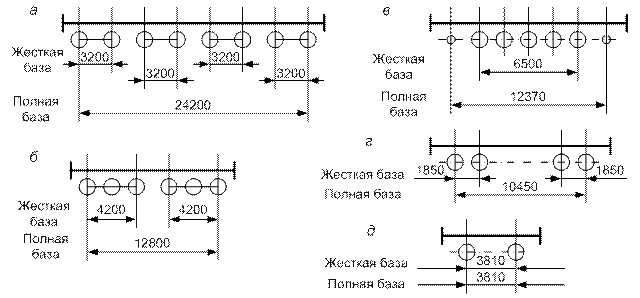 Рис. 9. Полная и жесткая колесные базы: а – электровоза ВЛ8 (2 секции);