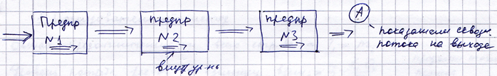 При традиционном подходе задача совершенствования сквозного материального потока внутри предприятия как правило не имеет приоритетного значения ни для одного из предприятий. Показатели материального потока на выходе из предприятия также как и в первом примере имеет случайные значения и далеки от оптимальных.