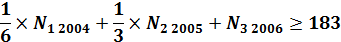 1/6*N1 (2004) + 1/3*N2 (2005) +N3 (2006) >= 183