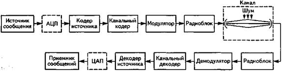 Источник сообщения генерирует сообщения, представляющие собой либо непрерывные функции от времени, либо потоки дискретных сигналов. Пример непрерывного во времени сообщения - волновой сигнал, передающий человеческую речь. Чтобы передать такой аналоговый сигнал через цифровую систему связи, его необходимо преобразовать в цифровую форму. С этой целью сигнал последовательно подвергается аналого-цифровому преобразованию (АЦП) и кодированию с устранением избыточности в кодере источника. Хороший кодер источника «подгоняет» длину двоичных последовательностей под статистические свойства источника сообщений. В случае передачи речевого сигнала, кодер источника принято называть кодером речи. Важной характеристикой сигнала, преобразованного в цифровую форму, является цифровая скорость передачи (скорость цифрового представления), измеряемая числом формируемых на выходе АЦП двоичных символов в единицу времени - Rц, бит/с. В результате сжатия информациикодером речи скорость цифрового потока многократно уменьшается при сохранении приемлемого качества передачи речи.