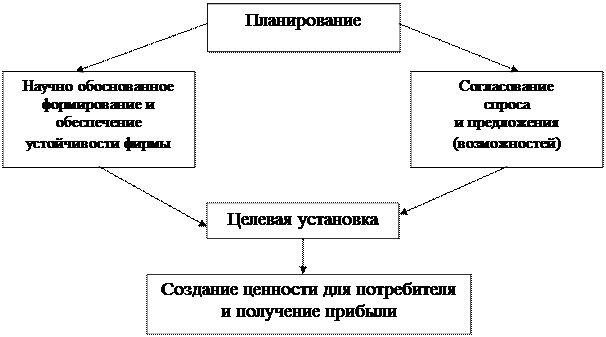 В отличие от программирования планирование обеспечивает систематическую, сбалансированную увязку целей организации с ее потенциальными возможностями по производству и реализации продукции с целями коммерческого поведения потребителей этой продукции.
