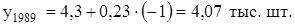 В данном случае l = -1, т.к. мы определяем уровень предыдущего года, т.е. экстраполируем на 1 год назад.