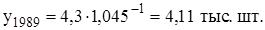Как видно из расчетов, использование разных формул дает неодинаковые результаты, но расхождение незначительное, всего 0,04 тыс. штук, поэтому пользоваться можно любым полученным значением уровня 1989 г.
