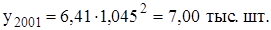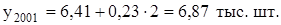 Для расчета уровня явления 2001 г. исходим из того, что прогноз необходимо произвести на 2 года вперед, начиная со значения признака в 1999 г. Тогда, используя I способ, найдем возможное количество вагонов в 2001 г.: