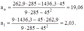 Расчеты параметров ао и а1 произведем по формулам (4.12) и (4.14):