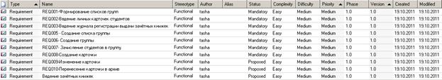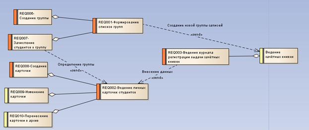 Ниже представлена модель управления требованиями для подсистемы «Зачисление студента»: