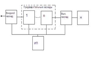 Входной каскад кроме функции усиления выполняет функцию согласования с источником сигнала. Предварительные каскады предназначены для усиления сигнала по напряжению. Выходной каскад, как правило, усиливает сигнал по мощности и выполняет функцию согласования усилителя с внешней нагрузкой.