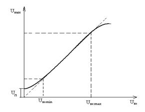 Из амплитудной характеристики видно, что усилитель может усиливать сигнал при Uс > Uвхmin и Uс < Uвxmax.