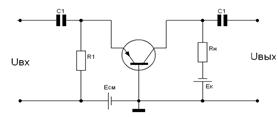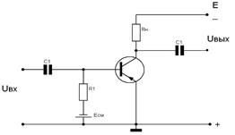 Усилительная схема представляет собой линейный четырехполюсник с двумя входными и двумя выходными клеммами. Поскольку транзистор имеет только три вывода, то один из них является общим для входной и выходной цепей усилителя. Обычно этот вывод соединяется с корпусом усилителя. Транзисторные усилители могут быть построены с общим эмиттером, с общим коллектором и с общей базой. Ламповые усилители бывают с общим катодом, с общим анодом и с общей сеткой. Наиболее часто усилительные схемы строятся с общим эмиттером или с общим катодом, что позволяет получить высокий коэффициент усиления и хорошие характеристики усилителя.