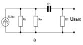 и коэффициент усиления. Поэтому эквивалентная схема в области нижних частот примет вид, изображенный на рис.6.6,а.