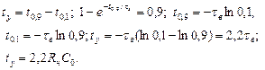 возрастает от уровня 0,1 до 0,9. Определим время установления:
