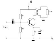 Через первичную обмотку трансформатора, включаемую в выходную цепь, подается напряжение питания на коллектор, а к вторичной обмотке подключают внешнюю нагрузку. Переменная составляющая выходного тока, проходя через первичную обмотку, создает на ней напряжение сигнала, трансформирующееся во вторичную обмотку и подающееся на внешную нагрузку.